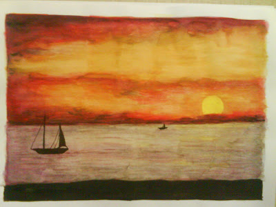 In a absolutely disturbed state of mind, I see it as a lonely sailorsailing out..companion ship is leaving towards the horizon leaving this boat alone.. Beech manjhdhar me akela sorts..the sun setting down and the thought of approaching darkness brings in a gloom..